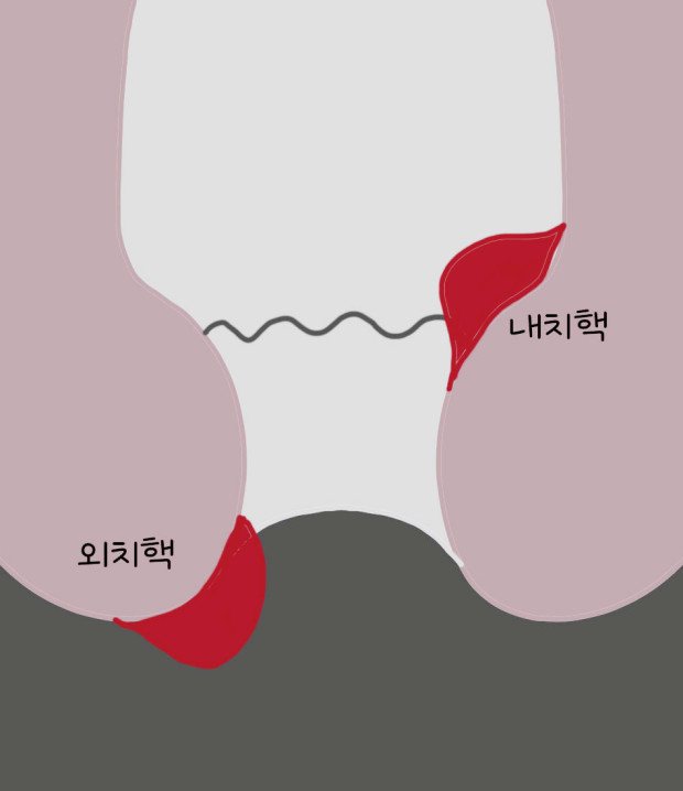 - 외치핵의 경우 항문 바깥으로 작은 혹이 만져질 수 있습니다.